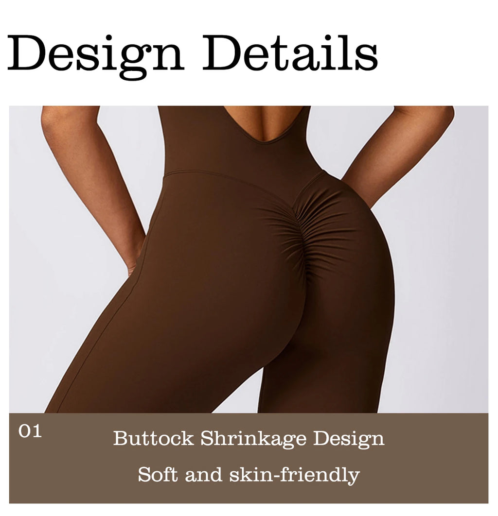 Sleeveless One-piece Suit Women Backless Sports Jumpsuit Female Flared Rompers Quick Drying Yoga Clothing Workout Bodysuits